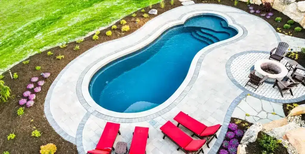 A spacious, modern fiberglass pool with a long swim lane, wide steps, and a smooth depth profile perfect for families, fitness, and stylish backyard living.