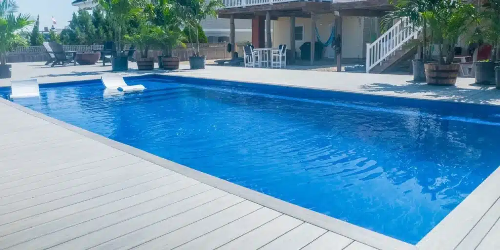 The Empire blends clean rectangular lines with graceful curved steps, creating a refined pool design that balances modern style with inviting comfort.