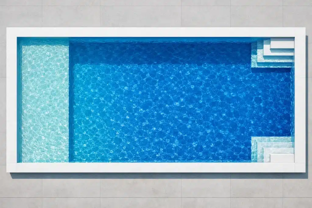 The Curacao is a best-selling fiberglass pool designed for small families and daily aqua therapy in any backyard.