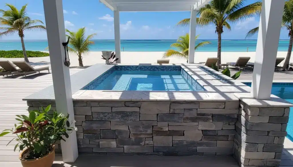 Premium custom-built plunge pools available in multiple sizes, offering compact design, durable construction, and comfortable bench seating.