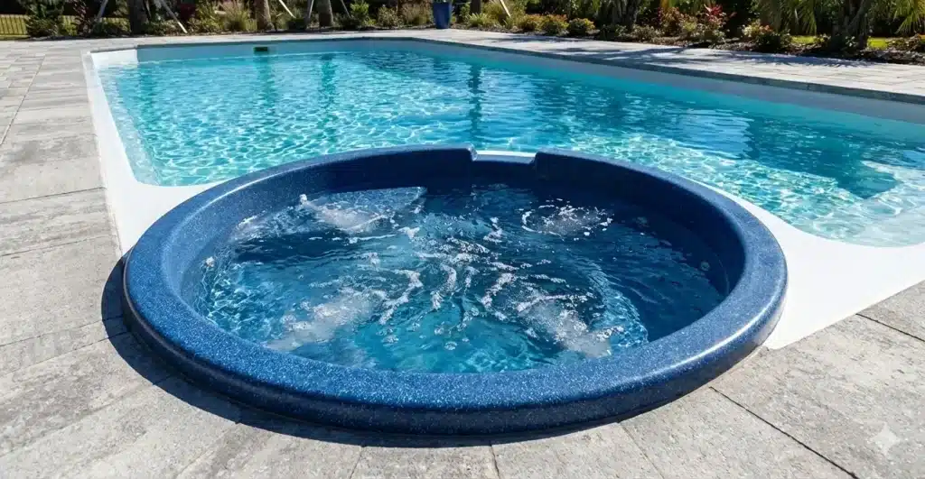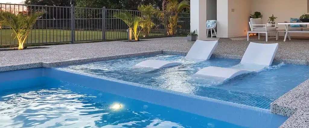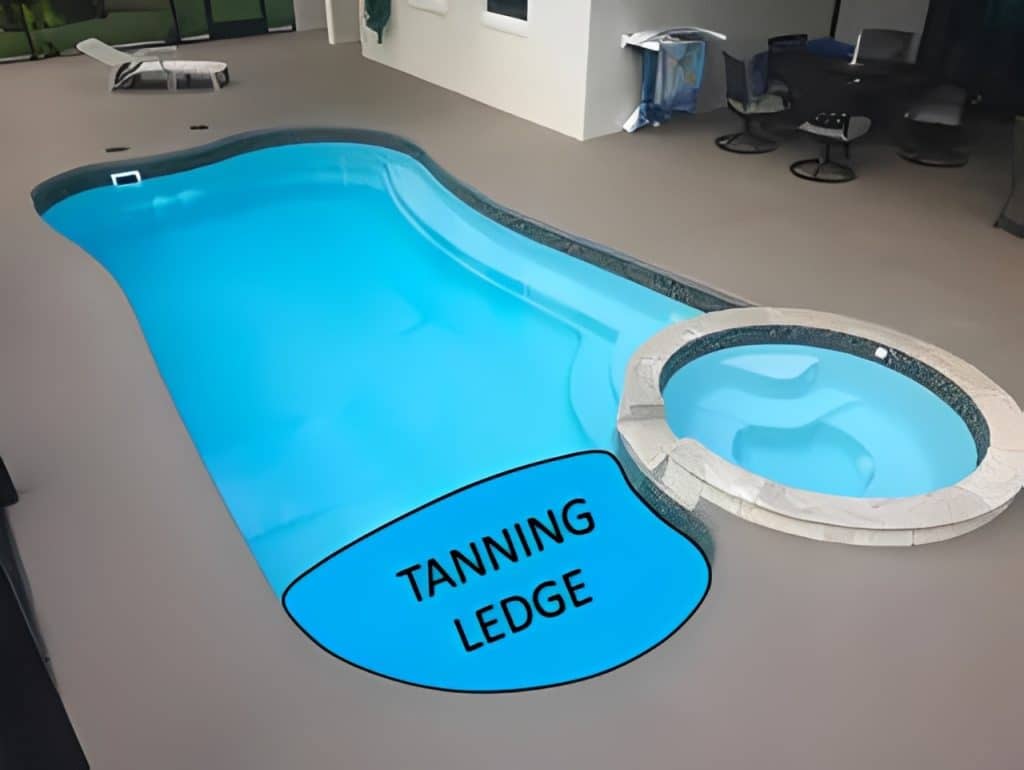 A shallow, resort-style tanning ledge designed for relaxation, play, and everyday comfort with a modern finish.
