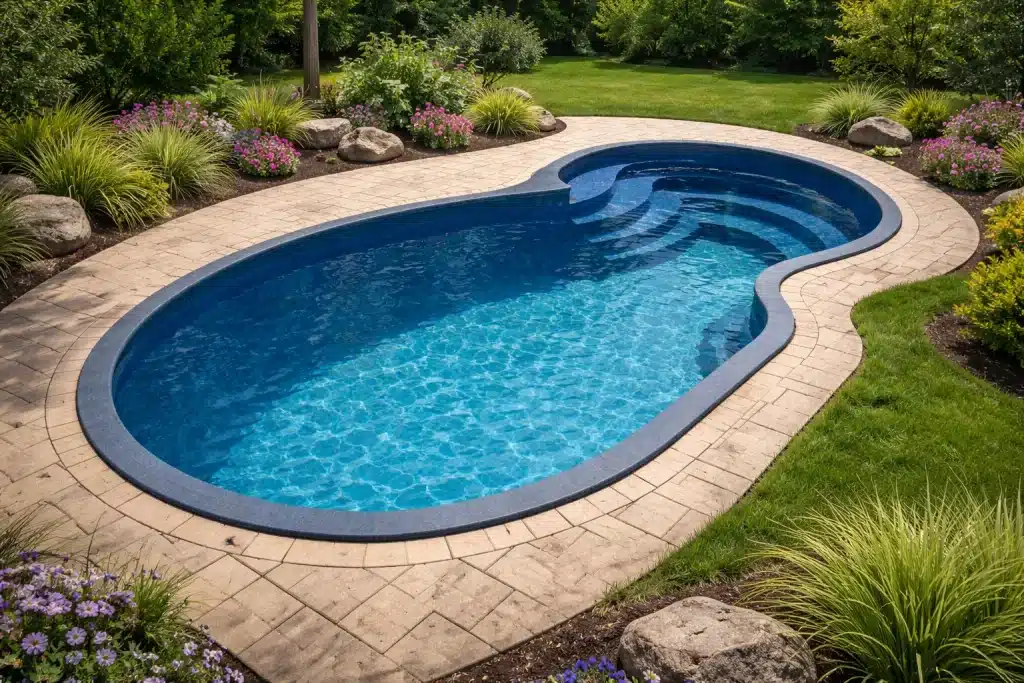 The Bahama Pool blends tropical-inspired design with customizable features, creating a welcoming and elegant inground pool for any outdoor space.