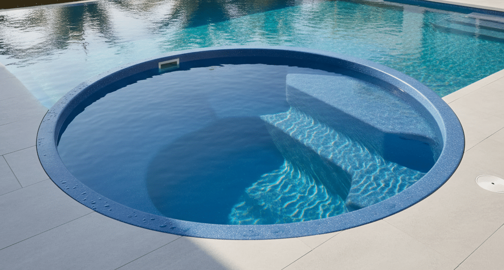A shallow, resort-style tanning ledge designed for relaxation, play, and everyday comfort with a modern finish.