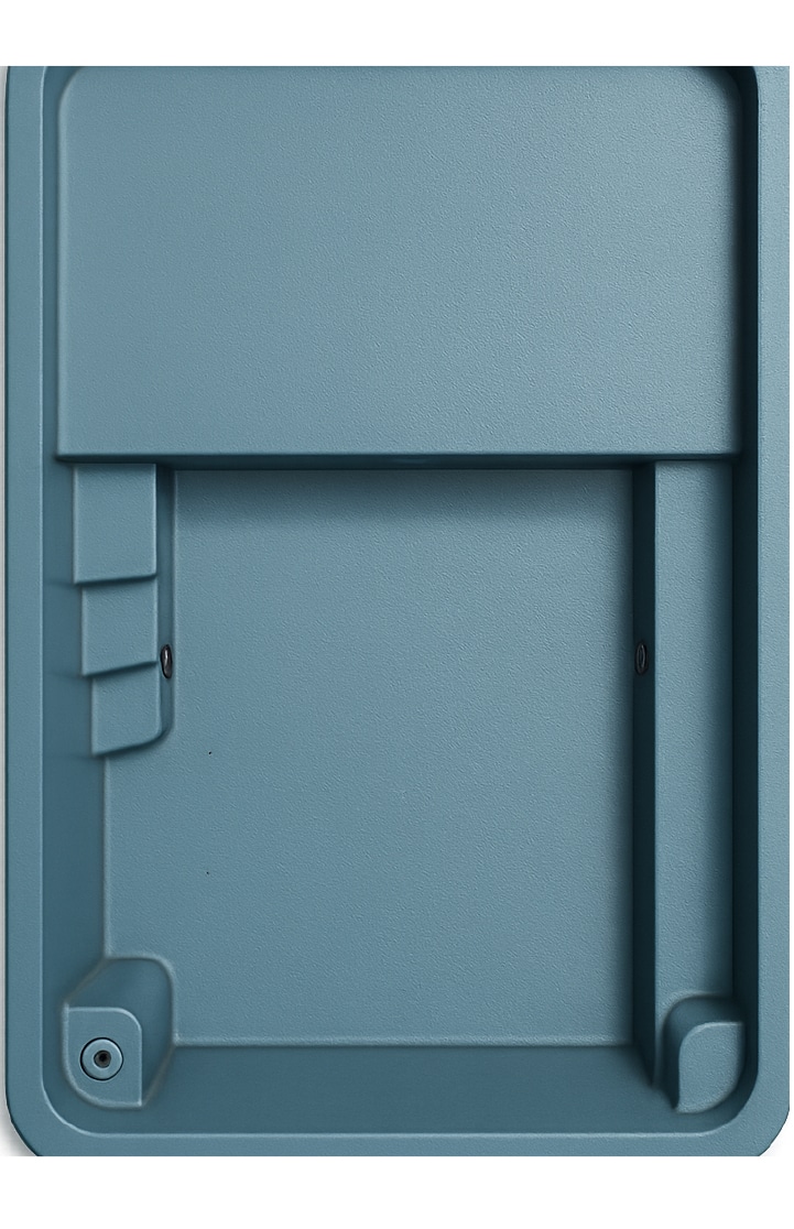 The Cozumel is a compact Fiberglass tanning ledge pool designed for relaxation, offering a shallow 10-inch depth perfect for adults and children alike.