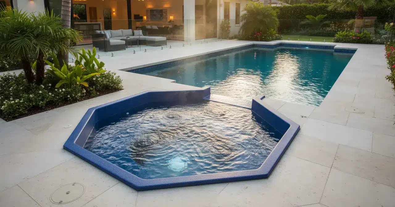 The Silver Shore Pool delivers coastal-inspired elegance with a spacious layout designed for relaxation and everyday enjoyment.