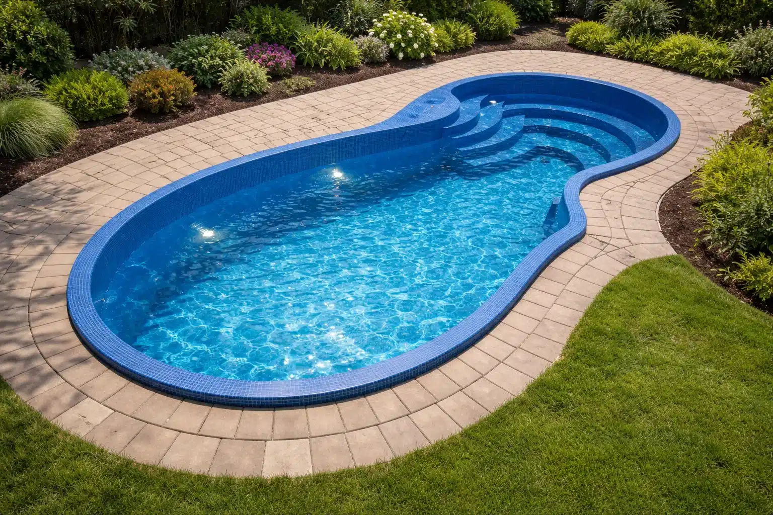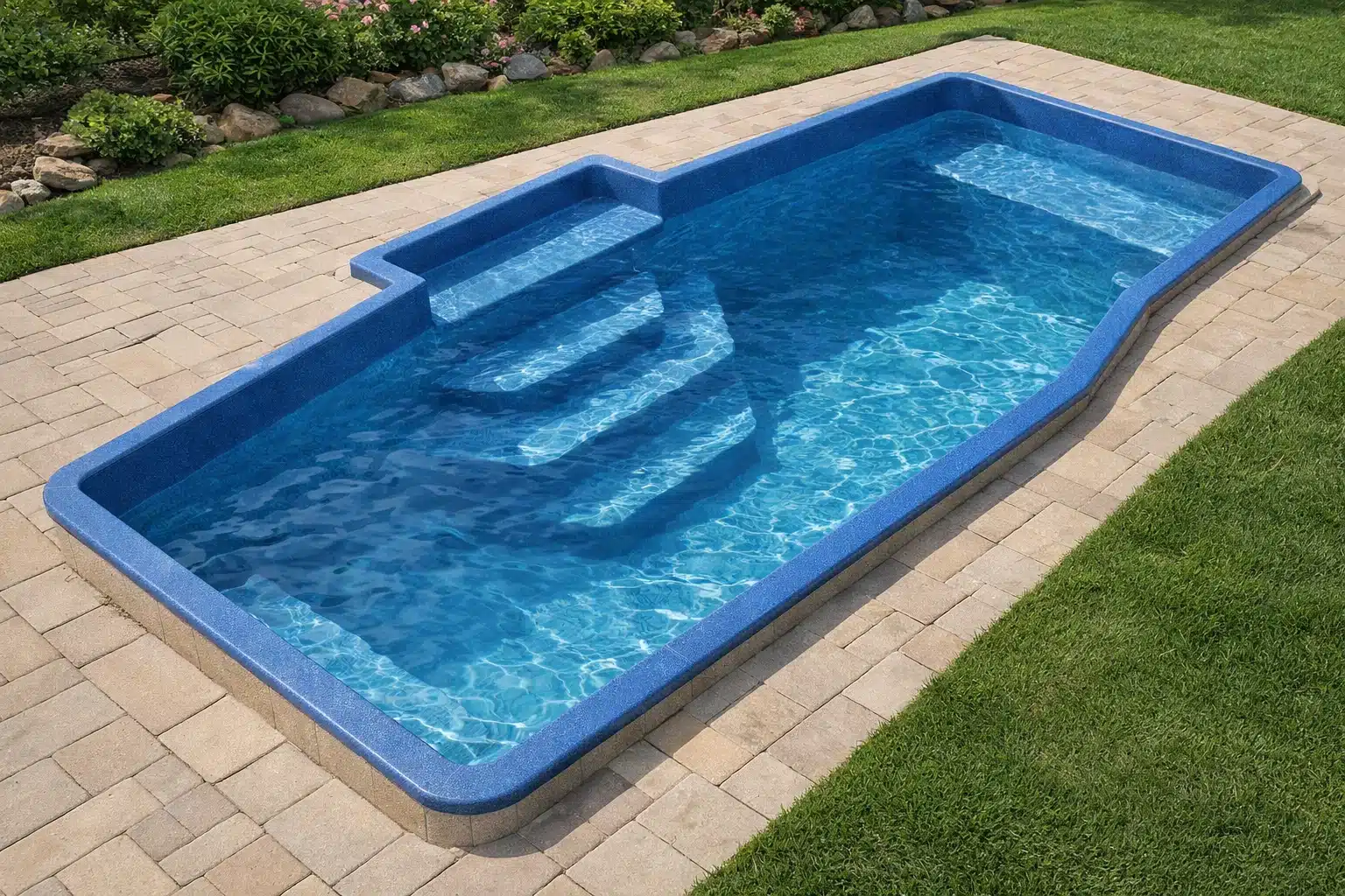 The Superior Pool combines clean, modern lines with curved entry steps, offering a refined design ideal for lounging and everyday swimming.