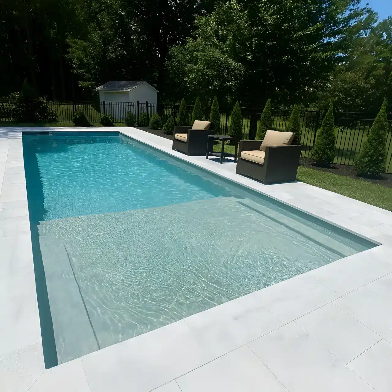 The Colombian Beach Fiberglass Pool is designed to capture the relaxed feel of a beachfront resort, bringing vacation-style comfort directly to your backyard. Its inviting shape and open layout create a welcoming environment perfect for lounging, socialising, and enjoying the water.