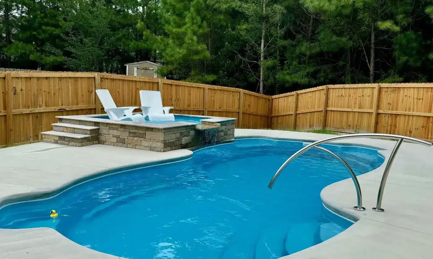 The Colombian Fiberglass Pool combines resort-style elegance, durable fiberglass construction, and a spacious layout for effortless backyard luxury.