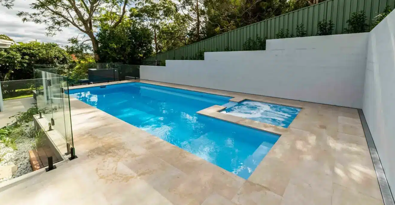 An integrated pool and spa layout that blends relaxation and swimming into one refined shell. - Spacious Shallow Entry Zone: