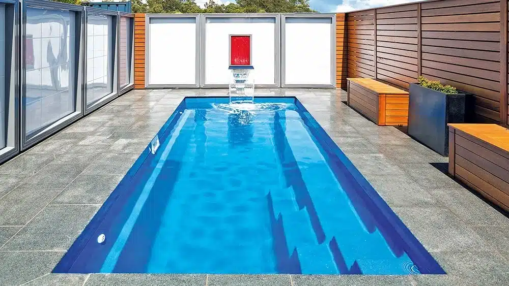 LED lighting highlights the pool’s crisp lines and creates an inviting atmosphere after dark, extending usability into the evening hours. An automatic pool cover enhances safety, improves energy efficiency, and helps maintain water cleanliness, making this pool an ideal solution for refined residential and architectural environments.
