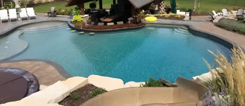 A freeform, nature-inspired pool design offering serene outdoor living, spacious swimming, and customizable luxury features.
