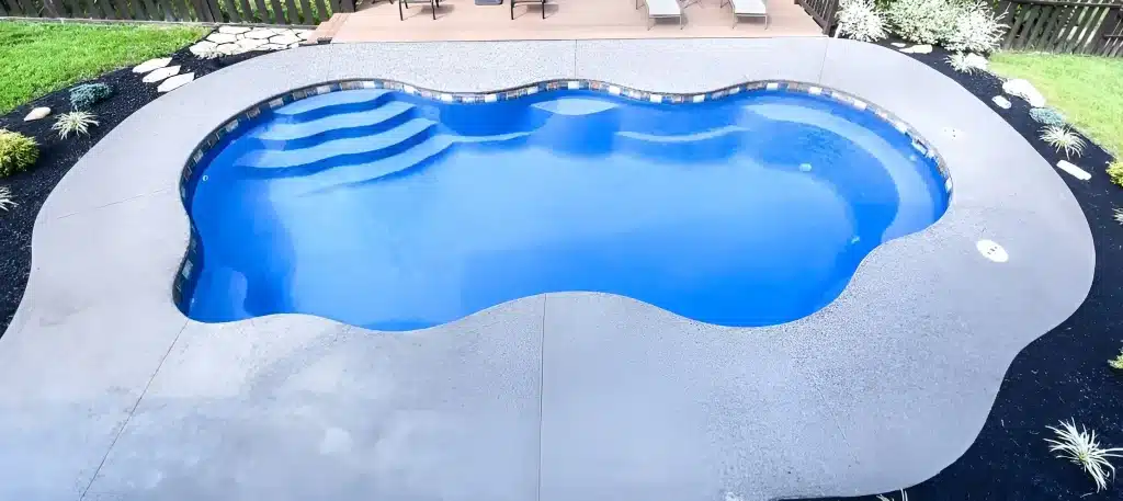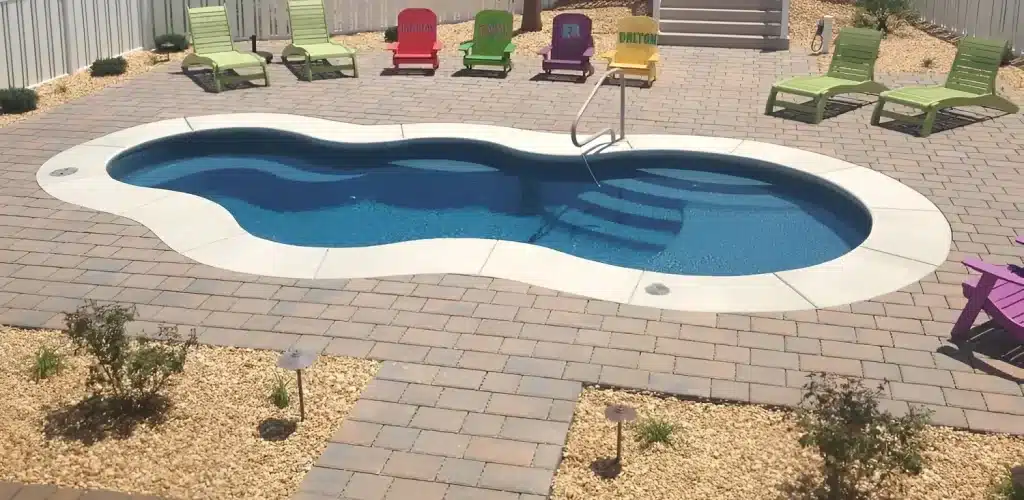 The Cape Cod 14 features flowing curves and refined details inspired by coastal design. It offers a welcoming, elegant pool style that enhances any backyard space.