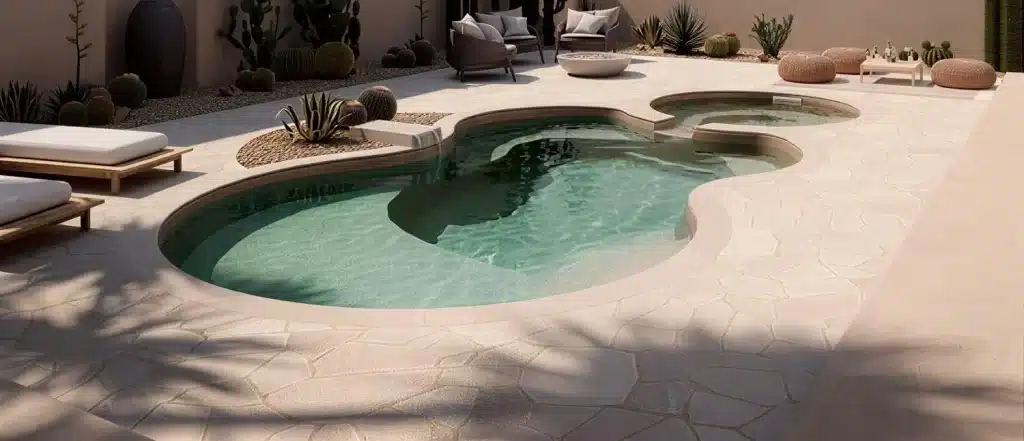 A European-inspired pool design offering elegant curves, refined style, and customizable luxury features.