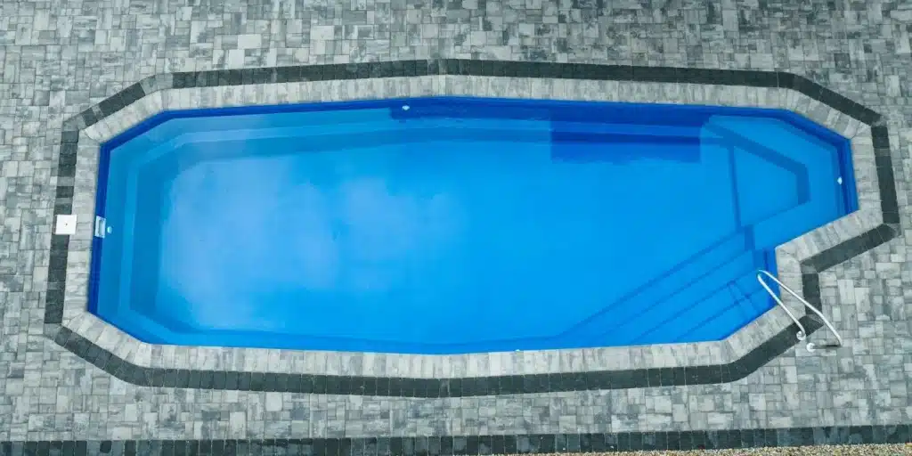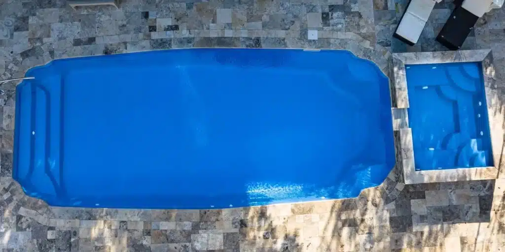 The South Beach is a modern fiberglass pool designed for style, comfort, and versatility, perfect for entertaining or everyday backyard enjoyment.