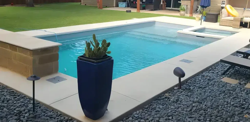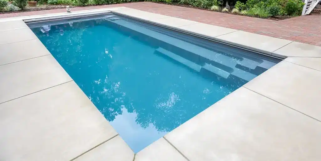 Pool with well-defined lines, shallow splash deck, and deep end, offering both style and aquatic enjoyment.