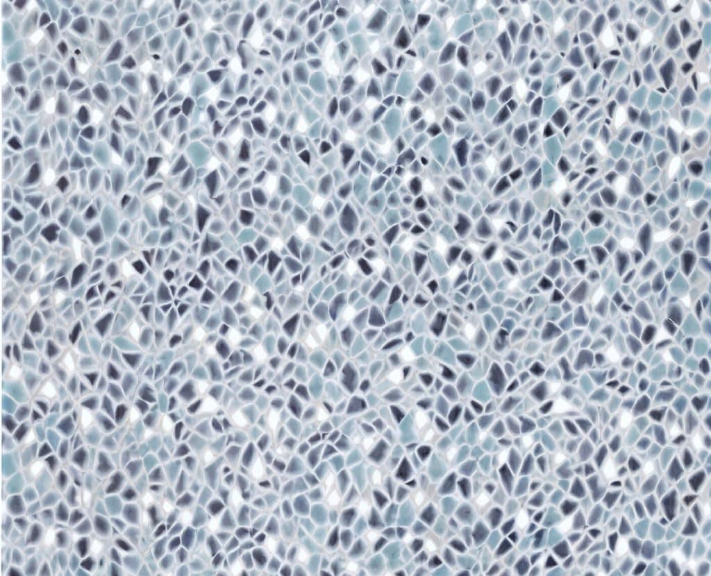SeaPebbles is a sleek, aquatic mosaic featuring a dense blend of deep navy, teal, and crystalline fragments. Its organic, multi-tonal