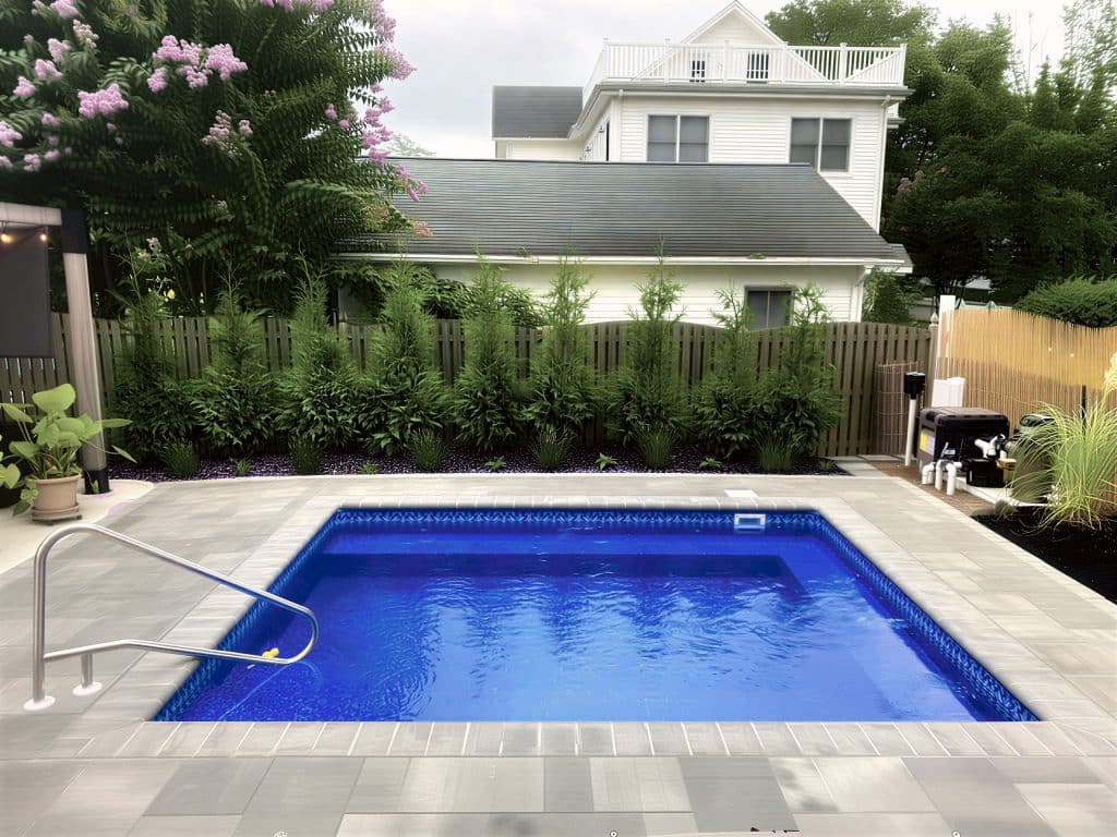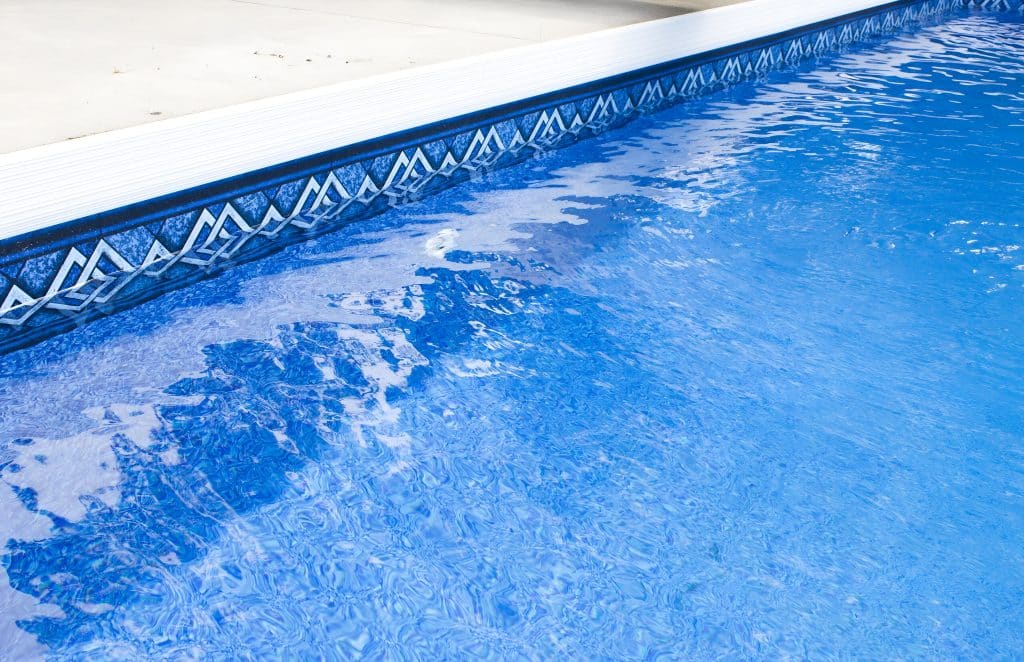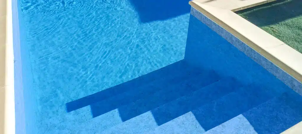 The Summer Blue pool liner features a natural, stone-inspired texture in a soft, uniform blue tone. Its mottled, organic appearance