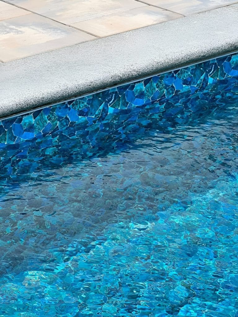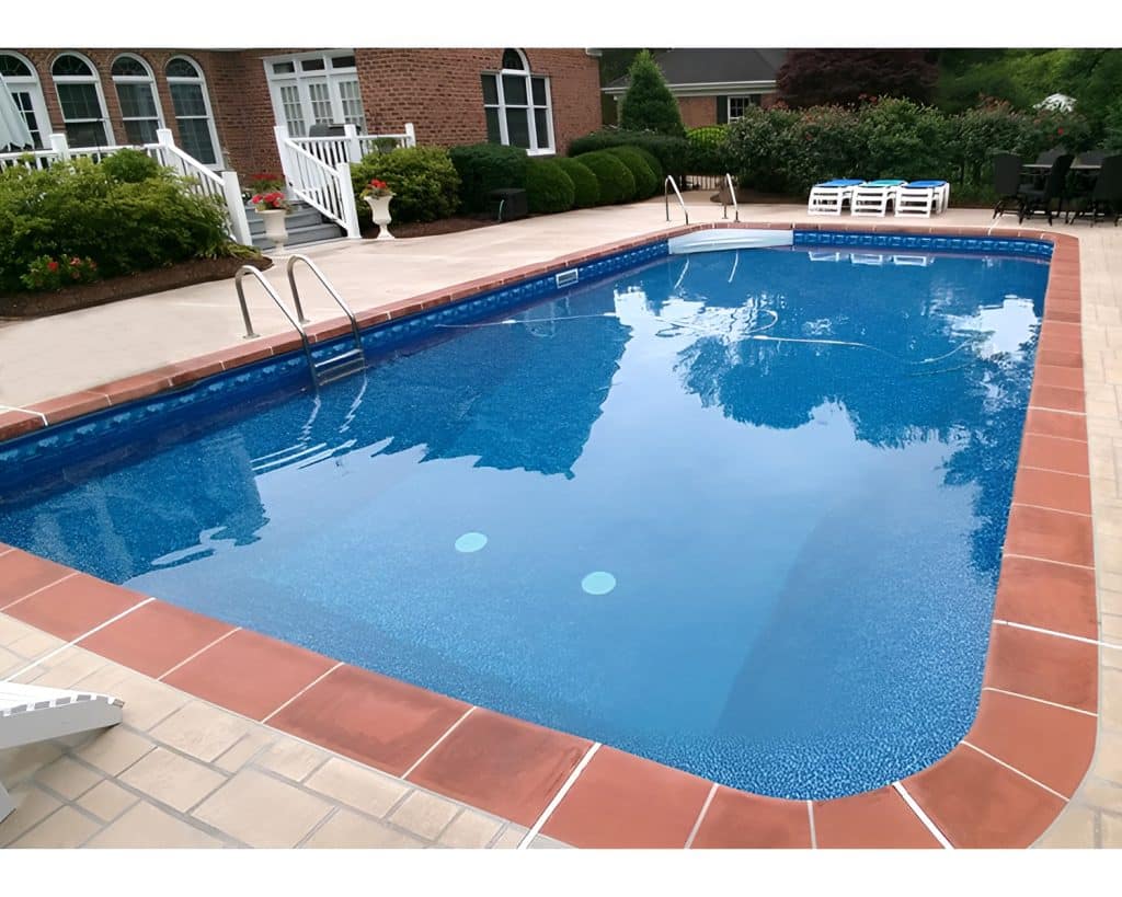 Gladstone is a dynamic pool liner design featuring a classic herringbone or “basketweave” pattern. It is composed of small, rectangular